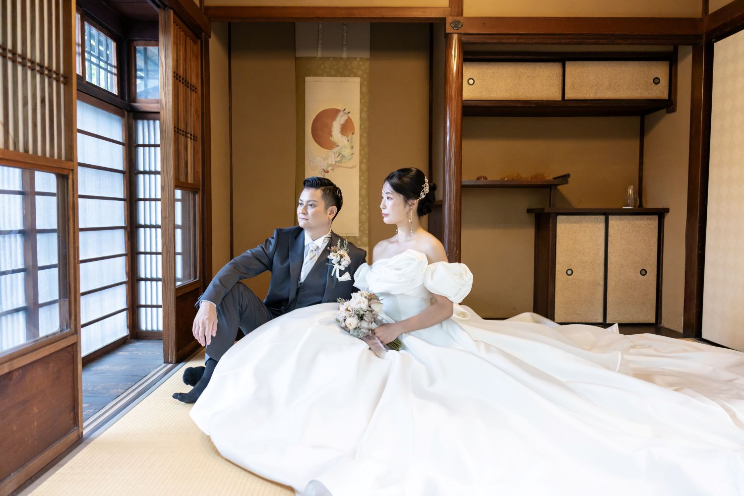 「京都町家寫眞館」では、和室の静けさとドレスの輝きを一枚の写真に閉じ込める、特別な撮影が叶います。