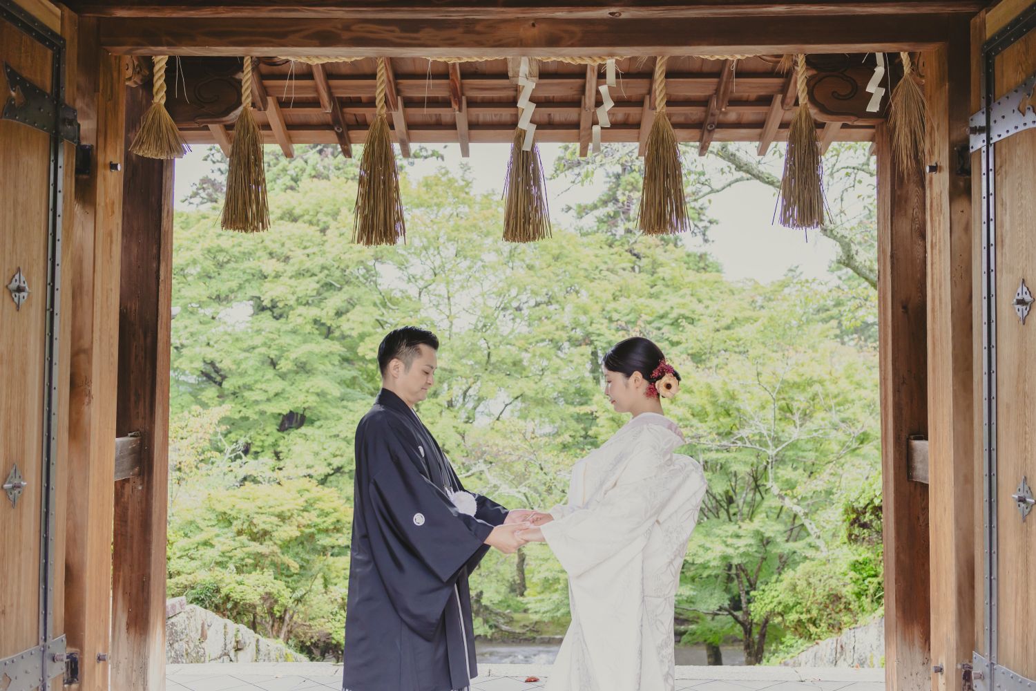 境内に並ぶ朱塗りの建物は、白無垢・色打掛・紋付袴がとてもよく映えます。