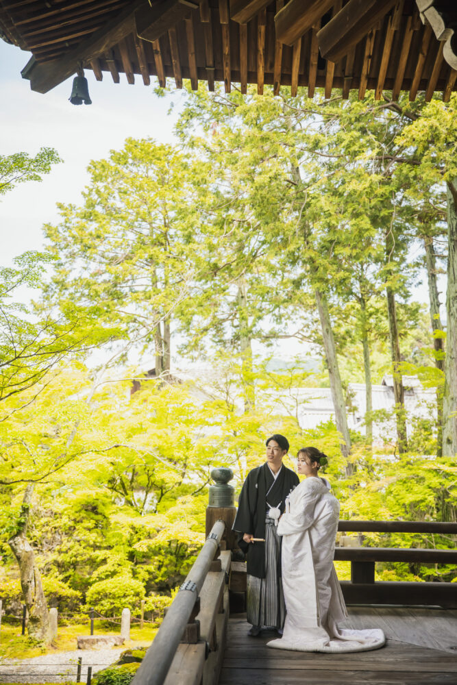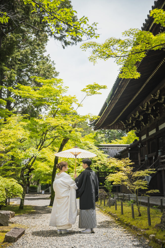 そして、緑の中でも、瑞々しい若葉は別格。薄い黄緑が光を通し、おふたりとそして衣装もより引き立ててくれるのです。