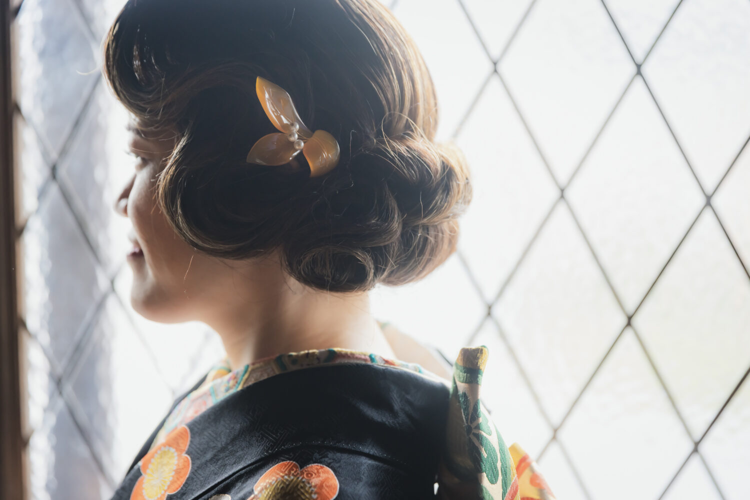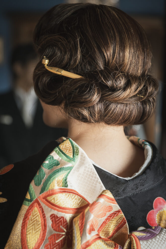 大正ロマンといえば「フィンガーウェーブ」。べっ甲のかんざしで優雅なイメージに。