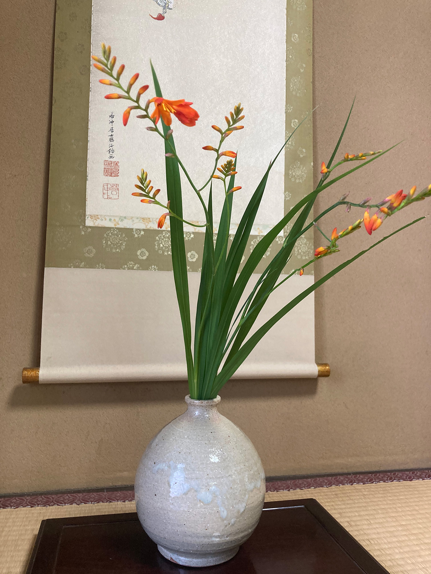 先週に活けてもらった床の間のフリージアのつぼみが 花を咲かせました(*^-^*)