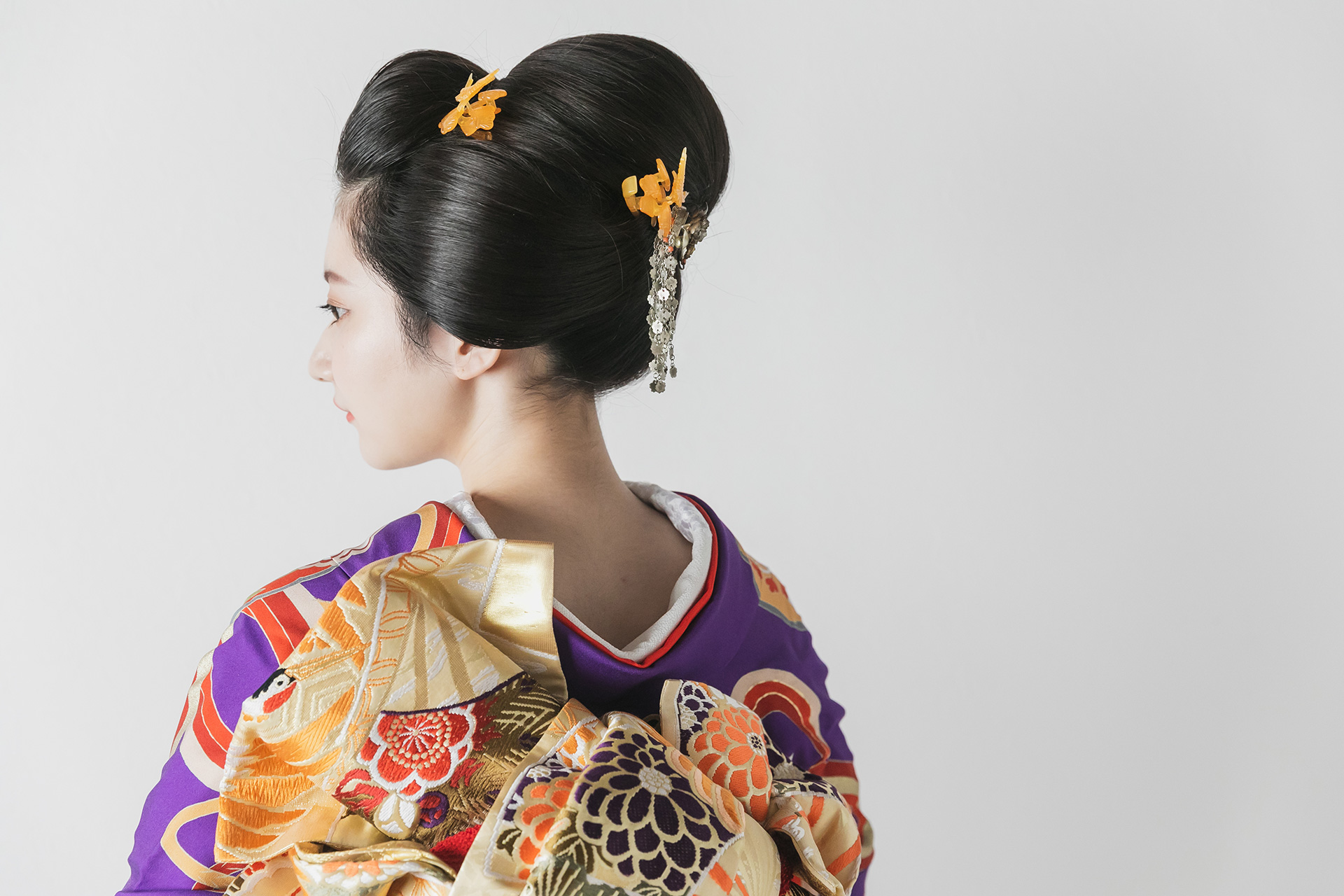 新日本髪のお問い合わせよくいただいたてます! 鎖骨まで髪の長さがあれば地毛結いは可能です(^^) 地毛結いの追加料金もございませんので ご検討の方はこの機会に試してみませんか☆ お衣裳も引き振袖を選んでいただいてもご料金一律です!