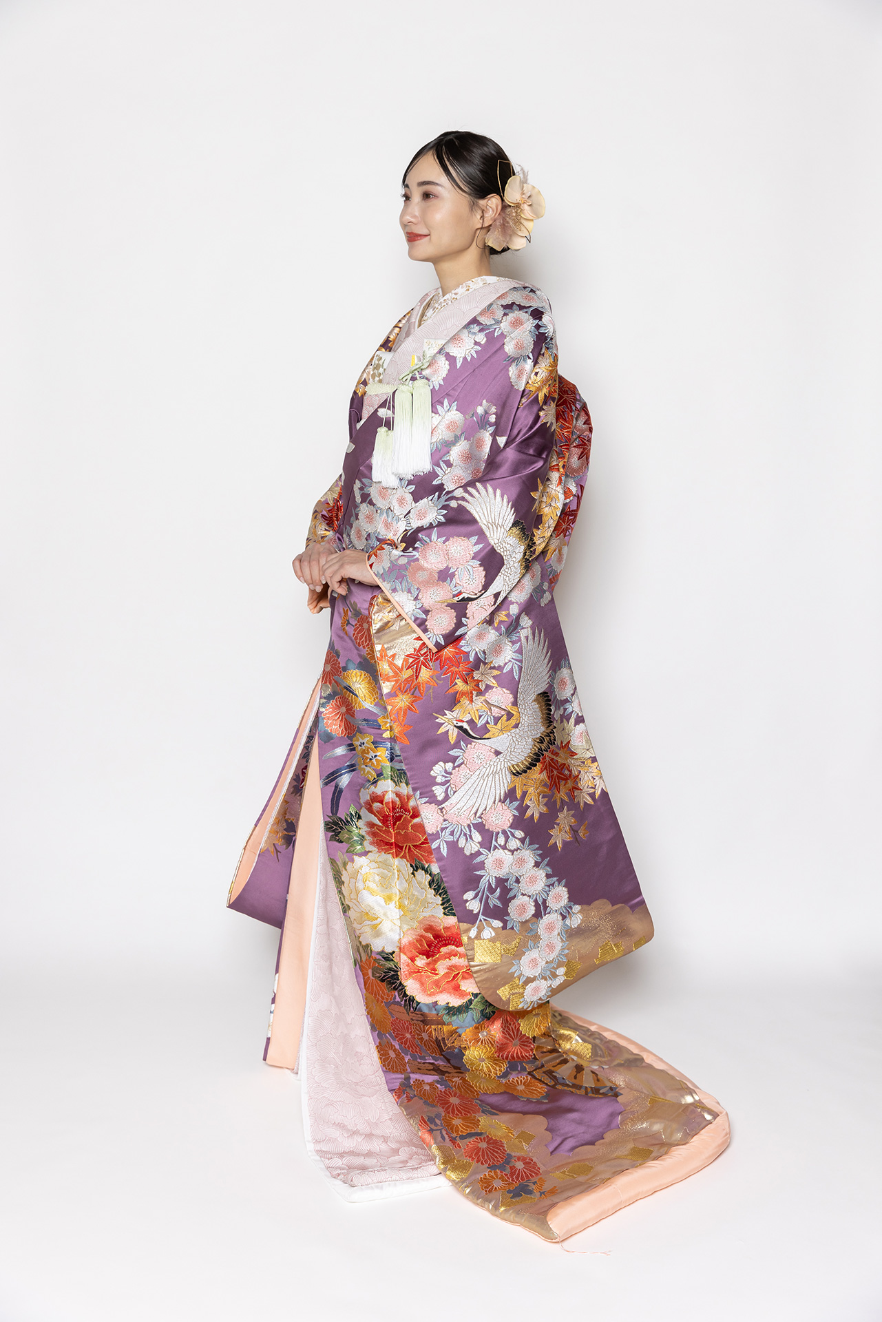 藤色の色打掛は裏地がサーモンピンク♡