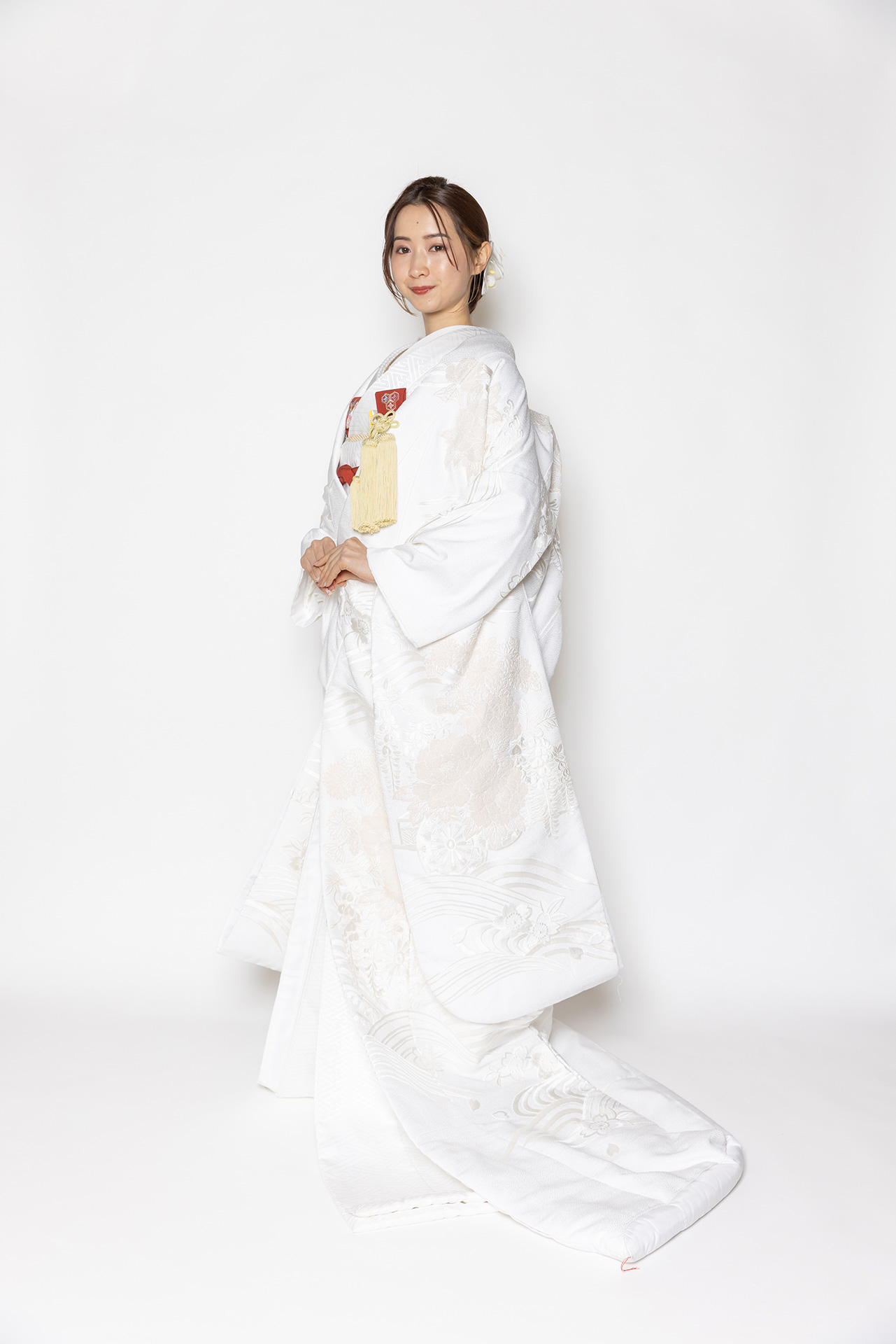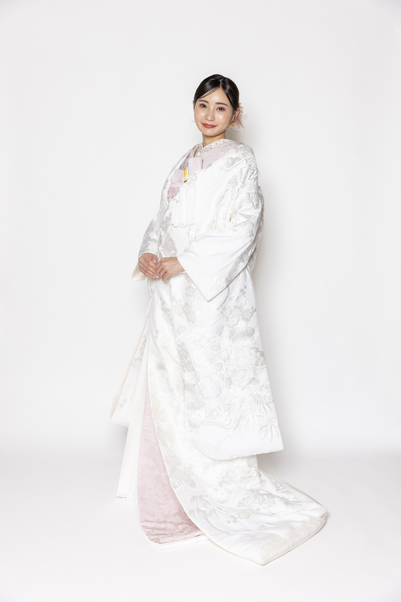 柔らかい素材の白無垢で、すとんと落ちるシルエットが綺麗な一着です(*^-^*)