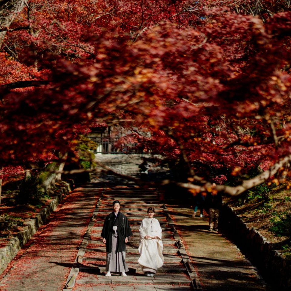 秋の京都でフォトウエディング。紅葉ロケーション撮影のお問い合わせが増えています
