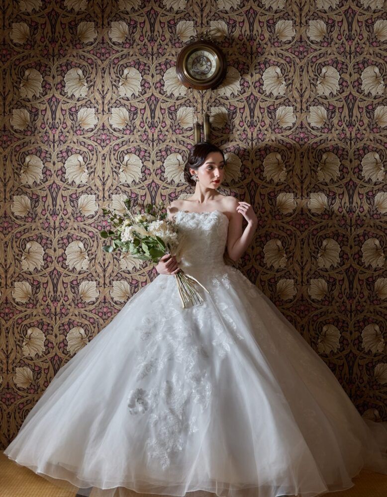 上質な素材と、アトリエで一針一針施したフランスレースはうっとりしてしまうようなドレスがCanta bella Dress。
