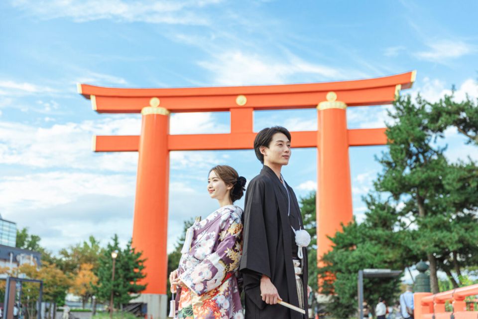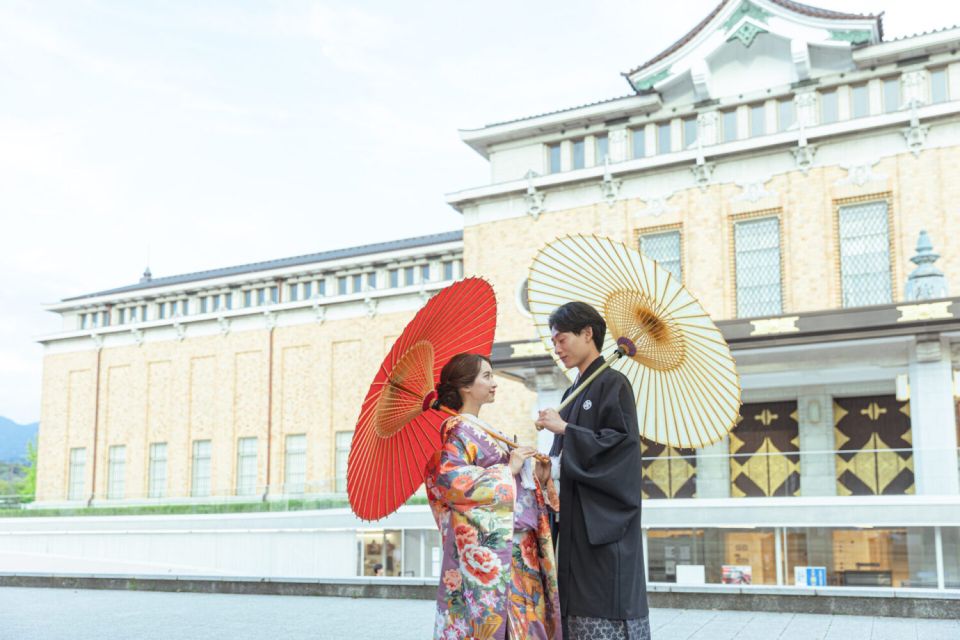 岡崎公園には平安神宮の大鳥居や美術館・京都市立図書館が点在し、その外観は歴史を彷彿とした建物ばかり。東山も望める自然も豊かな撮影プランです