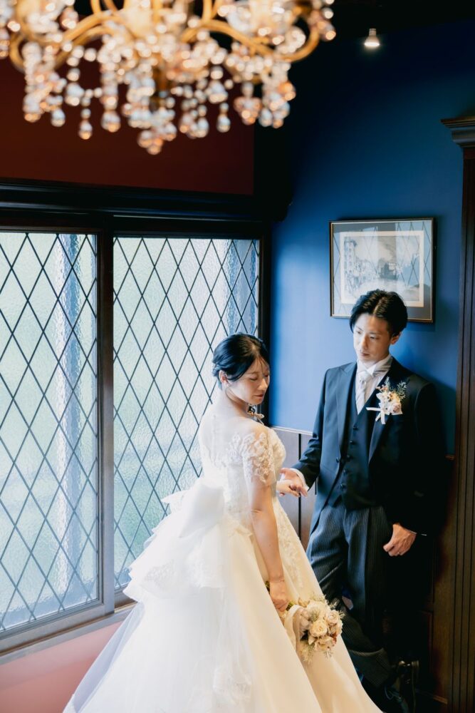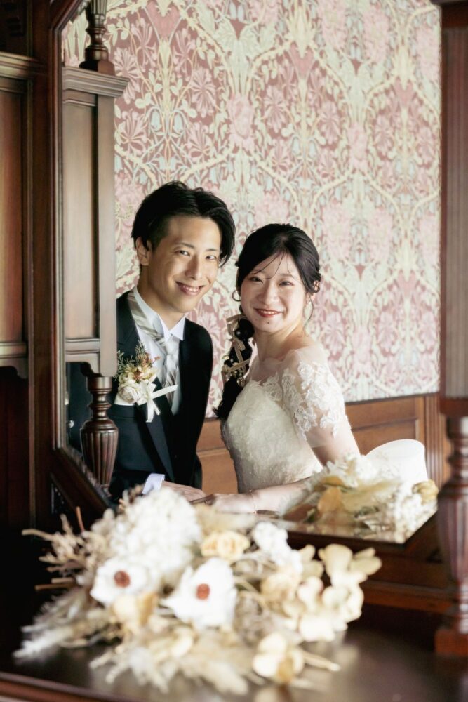 クラシックなアンティークスタジオでは、お二人をナチュラルな光が包み込んでくれました。