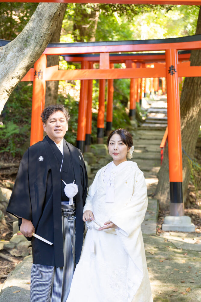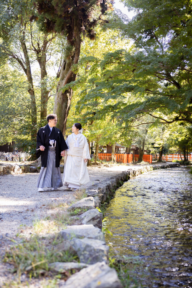 遠方からのご準備はきっと大変だったと思いますが、おふたりの歩幅がぴたりと合う姿を拝見しながら、ご結婚の記念の撮影に京都を選んでいただけたことが嬉しくなりました。