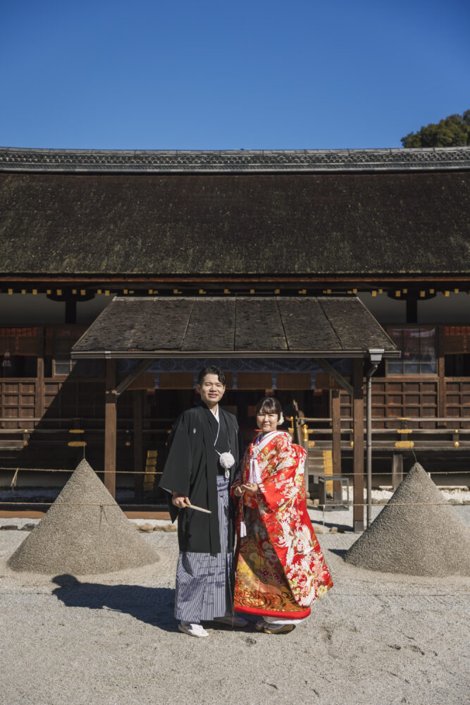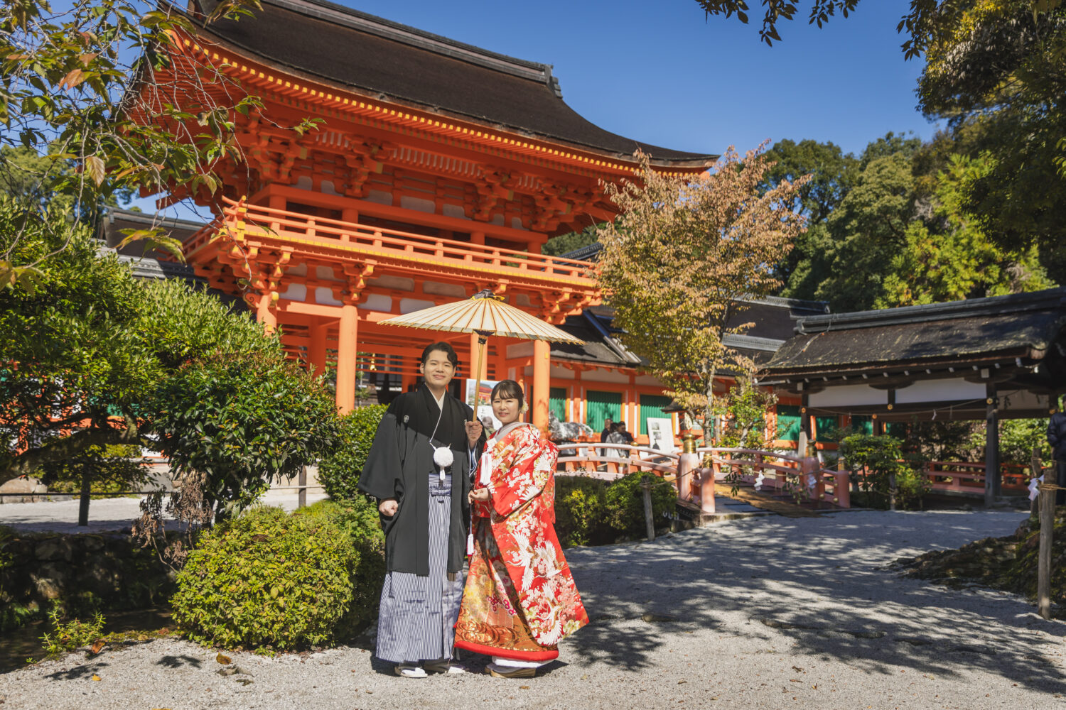 上賀茂神社のシンボルのような楼門や広々とした境内を背景にしたお写真は、伝統と華やぎが調和した、まさに京都ならではの一枚となりました。