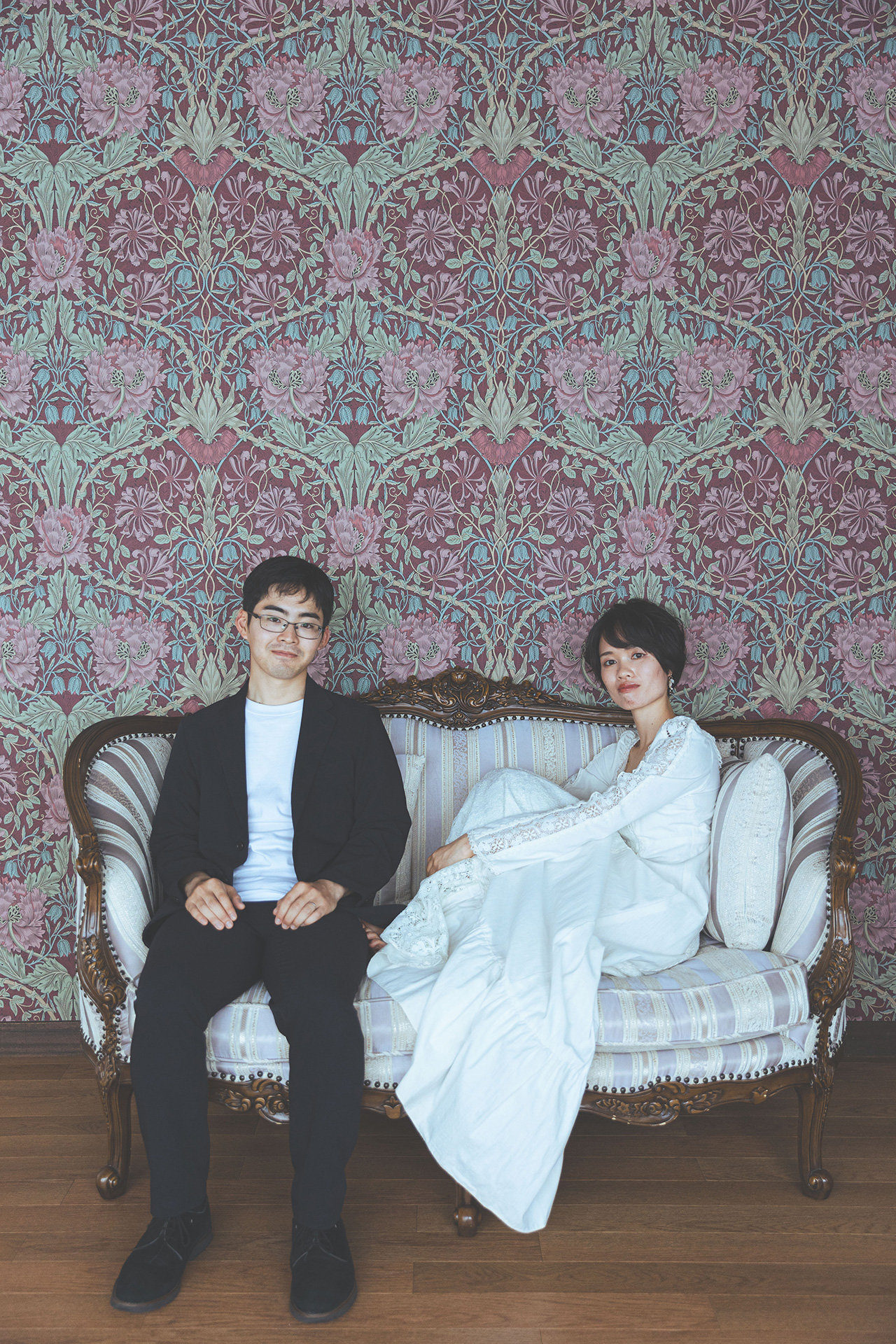 京都町家寫眞館ならではの、ウィリアムモリスの壁とソファもぴったりです♪